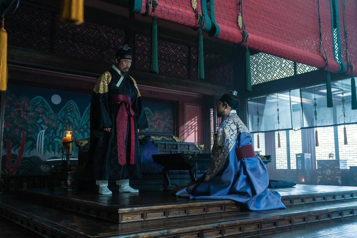 影片的前半段,用轻喜剧的笔触描绘了宫廷的日常礼仪,以及主角小心翼翼适应新环境的模样;可从王世子遇刺的那一刻起,故事便陡然转向,化身成一部节奏紧绷的夜间悬疑片。